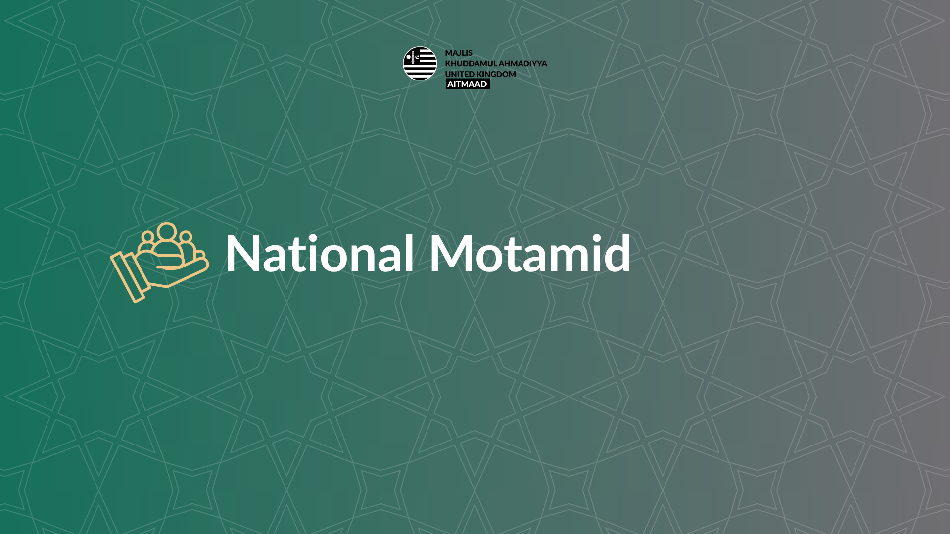The Aitmaad department assists the National Motamid (General Secretary of Majlis Khuddamul Ahmadiyya UK) with his responsibilities.