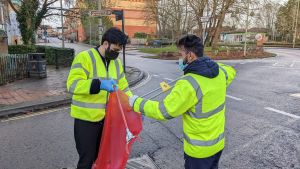 Members of AMY FC attended Baitul Ehsan Mosque in Mitcham as well as some members attending Aiwane Mahood centre in Farnham for their prayers. After this, they convened around 8am in Aldershot town centre, where they gathered with other members of the Ahmadiyya Muslim Community to clean the streets of Aldershot Town, after the new years celebrations. Bin bags and litter pickers were provided by the local council, and the team ventured around the town centre clearing litter wherever it was found.