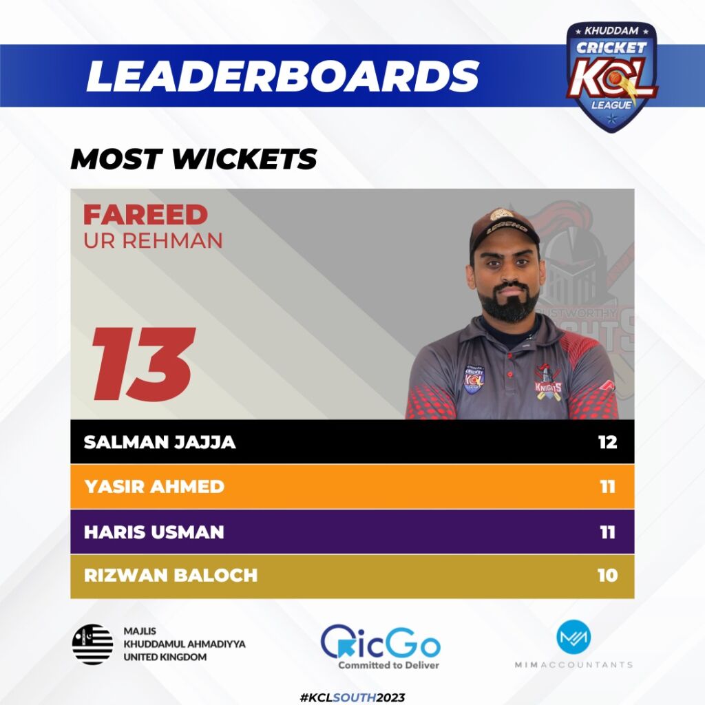 Meanwhile Fareed Ur Rehman is leading the wicket tally.