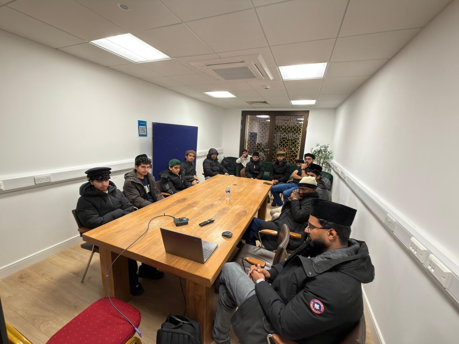 The session included a detailed discussion on Qur’anic and Biblical references relating to war, examining how scripture is often taken out of context and how media narratives can portray Islam and Muslims in a negative light. Khuddam engaged in thoughtful dialogue on how to respond to such narratives in a balanced and informed manner.