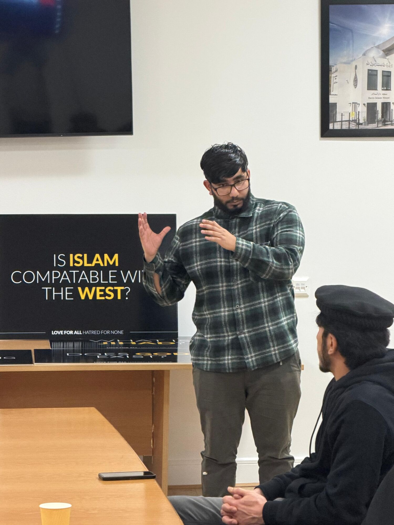 The Tabligh segment was highly engaging, with Khuddam taking part in role-play exercises. Thought-provoking questions such as “What is Shariah Law?” and “Is Islam compatible with the West?” were used to help Khuddam practise responding confidently and thoughtfully if approached by members of the public.