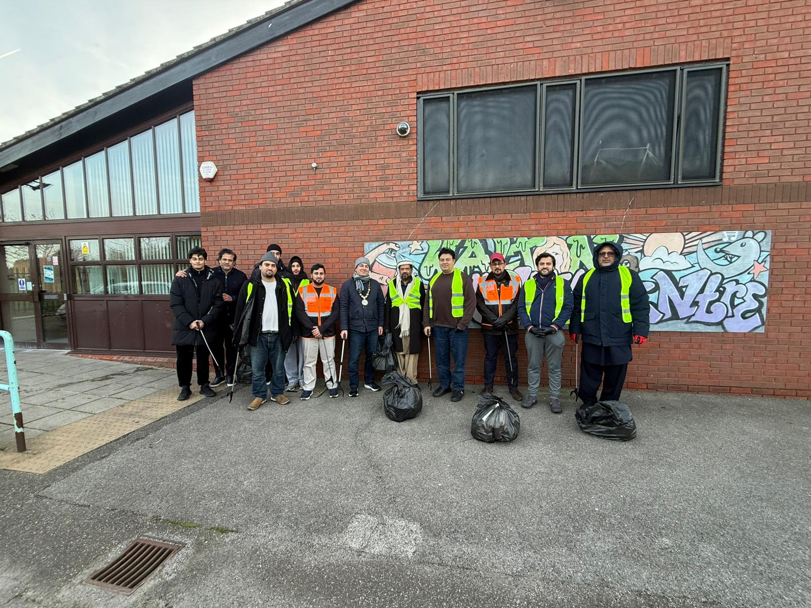 14 Khuddam and Atfal, joined by 5 Ansar took to the town centre in Walton-on-Thames for the Annual Community Cleanup. Joined by the Mayor of Elmbridge, the members spent nearly an hour collecting approximately 40kgs of rubbish from the streets and pavements across town.