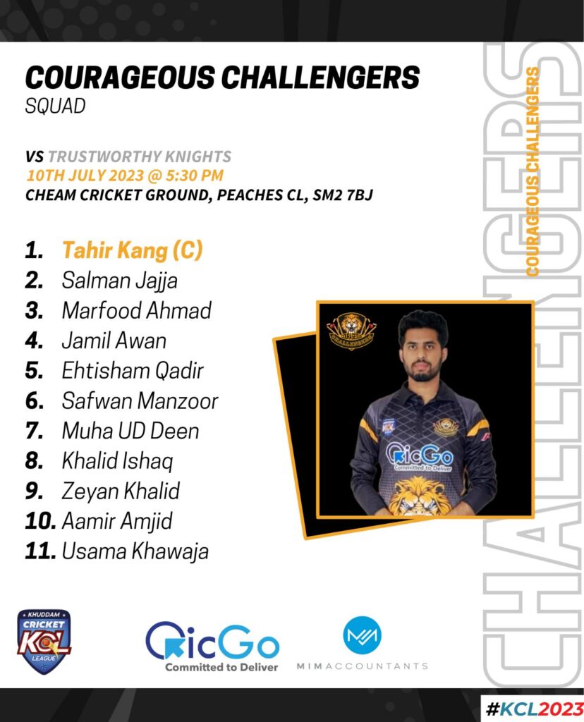 The Challangers were set to feature in their 2nd outing of the season against Trustworthy Knights in their fortress of Cheam CC