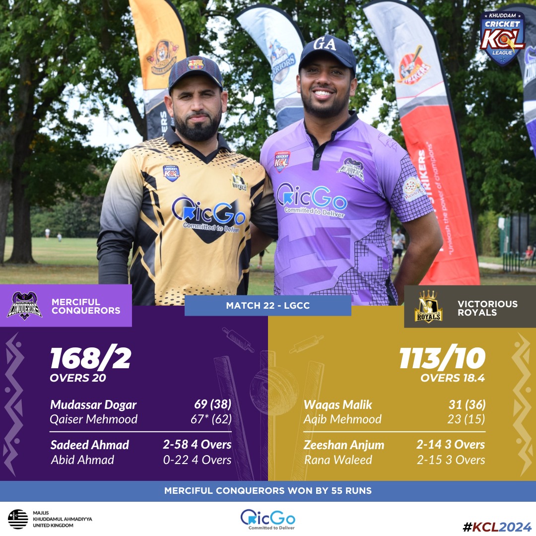 Imran Noori and Waqas Ahmed (31 runs off 36 balls) tried to rescue the innings and chase with another partnership and stretching the innings for their side. However, with the mounting pressure of run rate climb, the wickets eventually tumbled one after the other as Taha (3-15 with an economy of 3.75), Usman Tahir and Faizan himself delivered excellent spells with economies below 6 runs per over! Eventually a comfortable victory of 55 runs for the Conquerors.