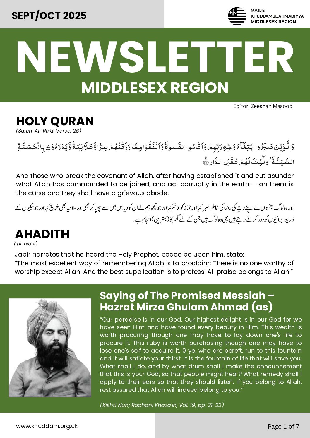 We humbly request your prayers for continued guidance and support, so we may persist in serving the Jama’at and working in the way of Allah Ta’ala.