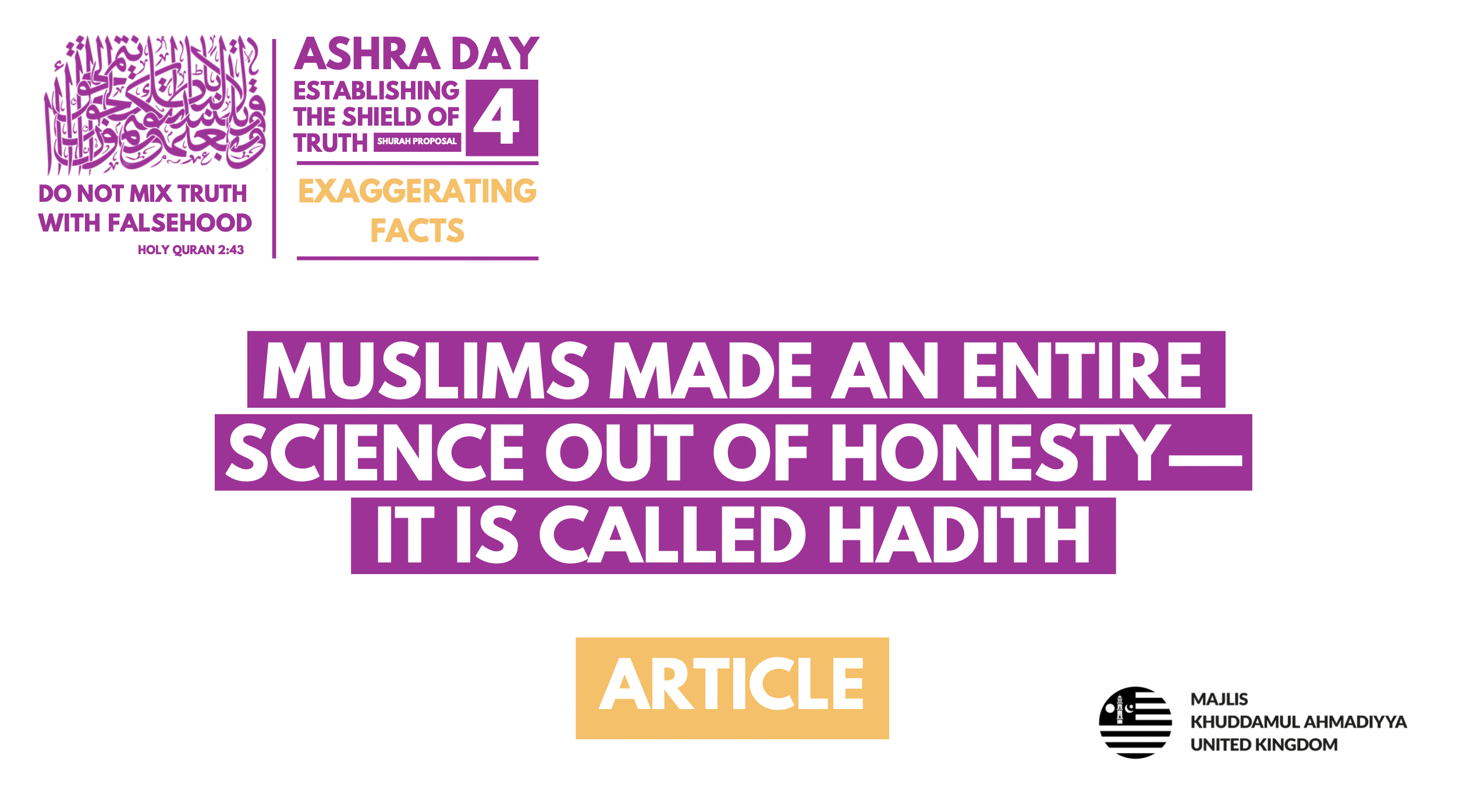 How is it found? In the Ahadith and the way in which they were collected—a testament to the principle of honesty in Islam. The rigorous development of the science of Hadith not only teaches us about the place of truth in Islamic society but also about—the specific topic for Day 4 of the Truth Ashra—exaggerating facts.