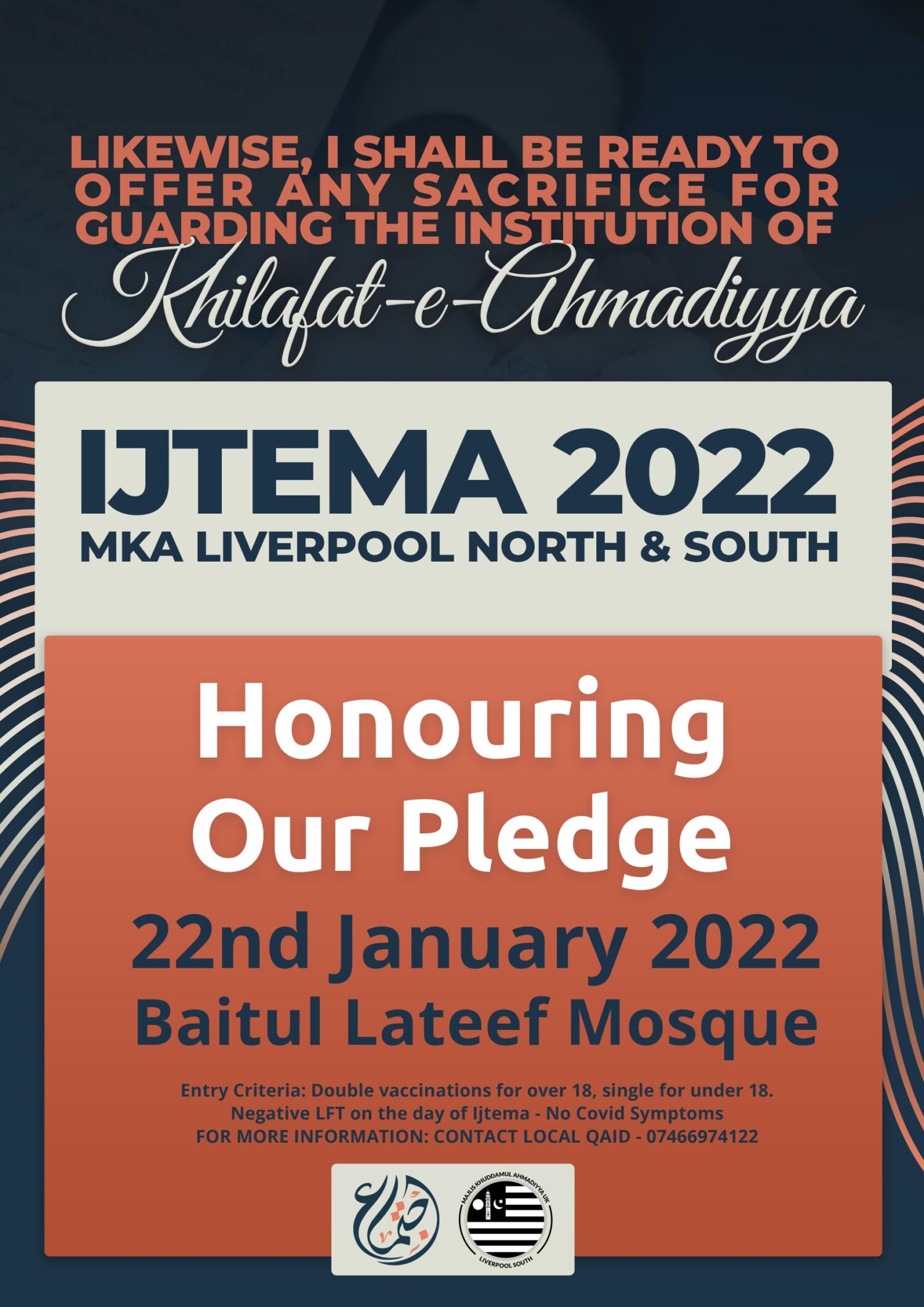 By the grace of Allah the Almighty MKA Liverpool North & South conducted local Ijtema on Saturday 22nd January 2022 on the theme of Honouring Our Pledge.