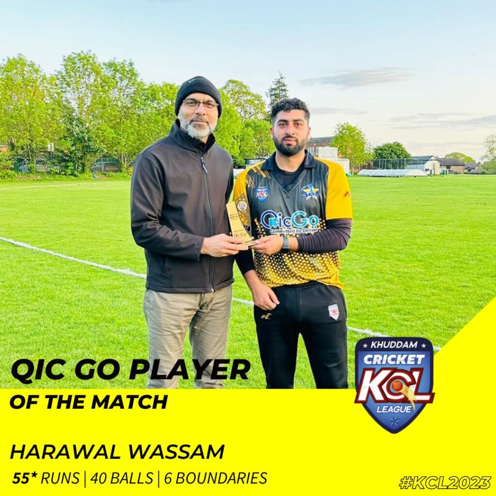 The Stars were steady in their response to the total, but the slow run rate in the powerplay and loss of two wickets by the 5th over with the score being 2-28 might have put them in a spot of bother knowing the skilled bowlers available to the strikers. Captain Harawal was watchful throughout the innings at number 3, whilst Khurram Goraya led the charge by scoring a dominating 48 off 30, at a strike rate of 160! In cruise control, Harawal took the responsibility of seeing off the total and finishing with 55 (40 balls), playing a perfect anchor role, and picking up 2 points for his team.