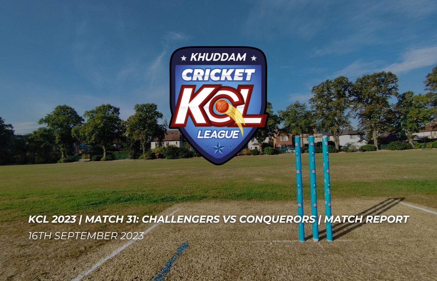 Harris Usman who was now the leading wicket taker of the league had a big role to do with Muha Ud Deen (66* off 33 balls) in front of him, and 19 runs between both sides and a semi final spot. The final battle between the two gun all-rounders was underway, and Muha Ud Deen wanted to manipulate the field looking to ramp towards fine leg, however the pace of Harris got the better of him as the ball clipped the ball with Muha Ud Deen missing! This was the wicket that sealed the win for the Conquerors, as the remaining batsmen from the Challengers could not clear the boundary 3 times in the last 5 balls.