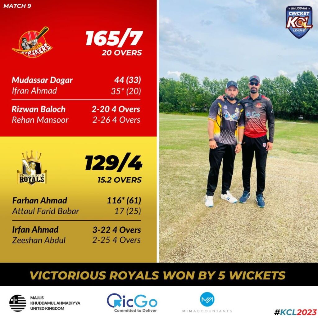 There is no doubt that Farhan Ahmed was going to be awarded the MOTM award for one of the great, standout innings of the tournament. The young man totally stole the show and announced himself as one of the upcoming talents of the league! A great victory for the Royals who are now looking to have found a winning vibe going into the business end of the tournament.