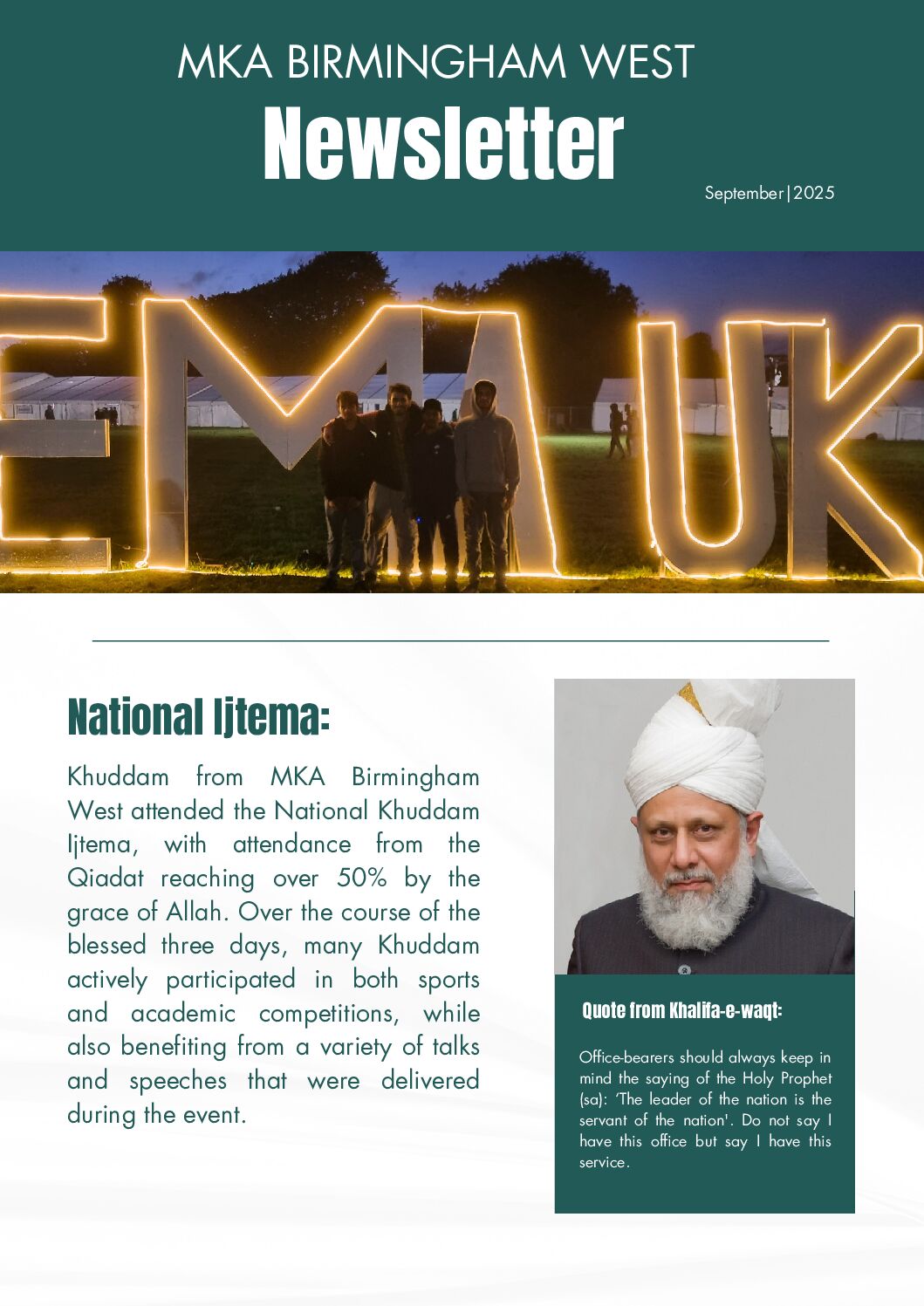 MKA Birmingham West Newsletter October 2, 2025 Tags on this news:#ishaat, #kek, Amoomi Duty, Humanity First, ijtema 2025, Sehat-e-Jismani