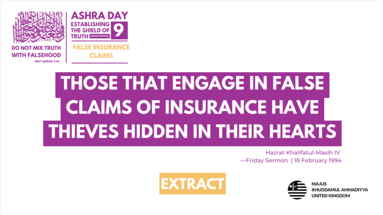 “In the case of insurance, there is its impermissible use. In daily life, the Government provides a facility—yet you are [incorrectly] doing what you are doing. If you are indeed doing [i.e making false insurance claims], then you ought to be ready to be caught and face punishment. Why do you do this? If you engage in [the false claims of insurance business] with the certainty that if you get caught you shall accept your mistake and shall not throw yourself into further sin, then many of you, if you have such certainty about yourselves, would run away from such an endeavour.