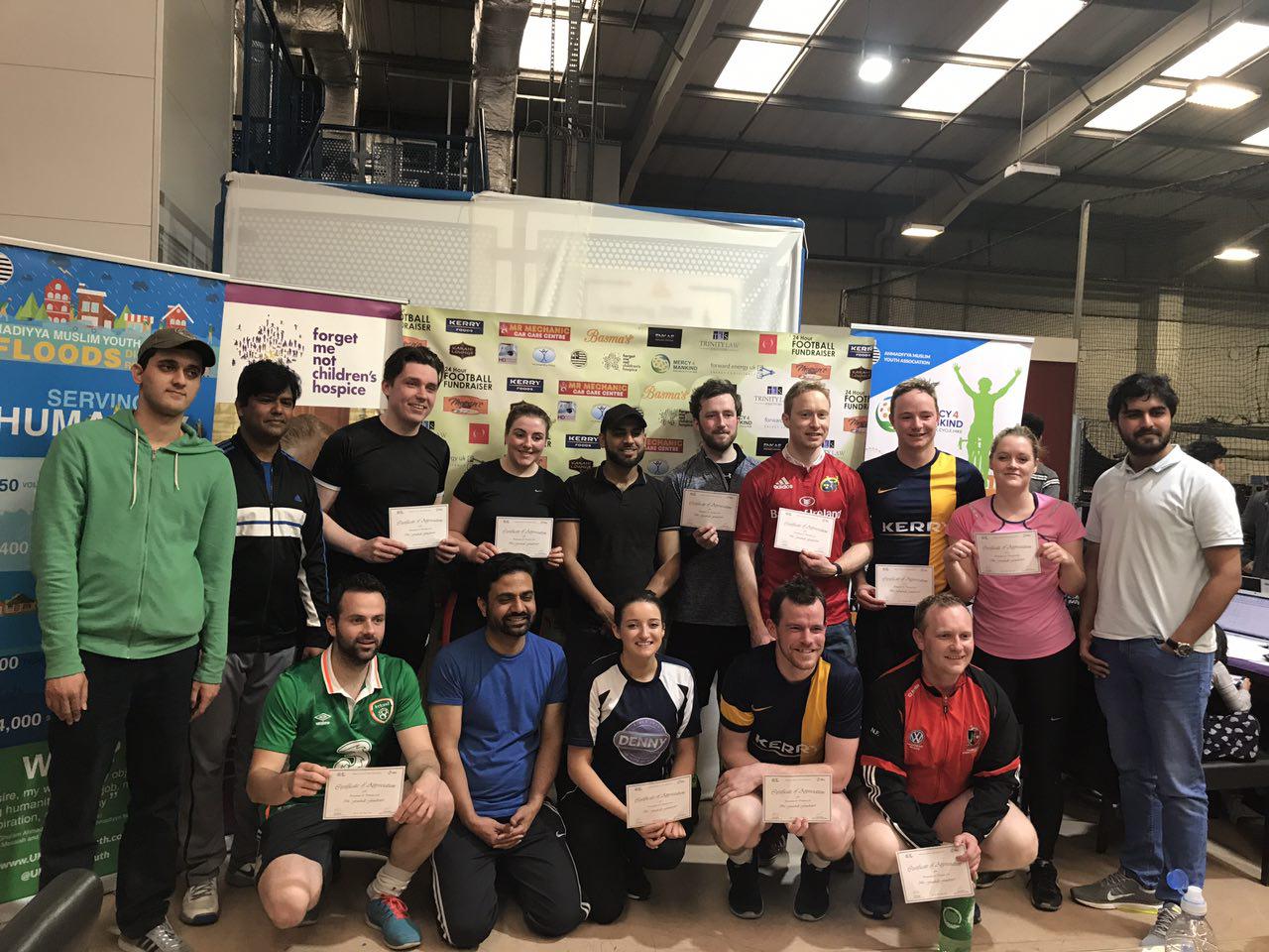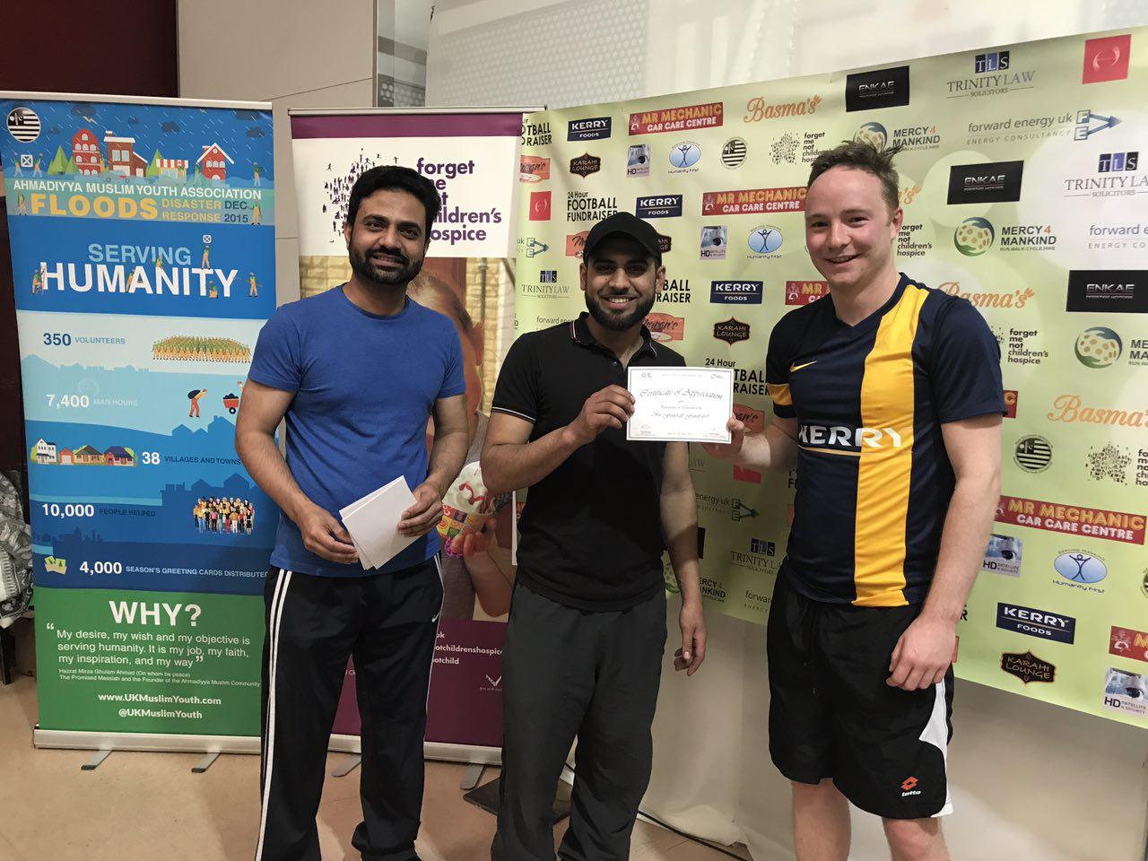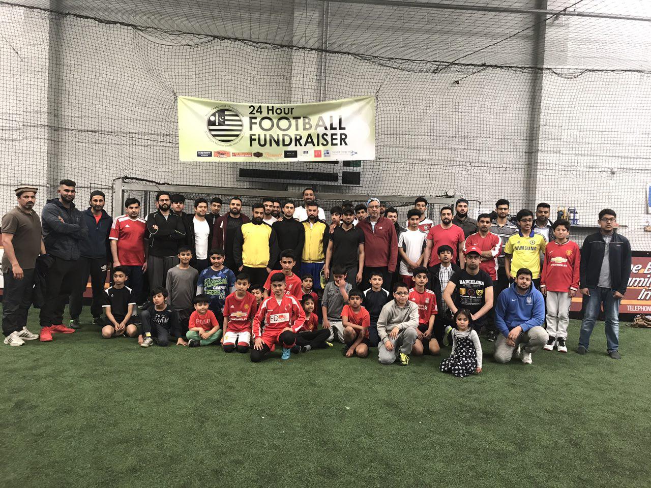Majlis Khuddamul Ahmadiyya Yorkshire organised a 24- hour football fundraiser for Charity. Forget Me Not Children’s Hospice and Humanity First UK were the charities for whom money was raised. The hospice supports around 270 local children in West Yorkshire with life-changing illnesses. Local businesses were contacted to support the event and 10 local businesses sponsored the event. On the day the event started on 6th May 2017 at 6pm and played by Sheffield, Rotherham, Spenvalley, Huddersfield North, Huddersfield South, North East, North West, Midlands, National Amila, and National Sehat-e-Jismani Teams. We had 4 external teams from Kerry Food and West end football Club as well. The event was played by 34 teams altogether with about 200 Participants who did over 480 goals and raised about £8000 till to date.