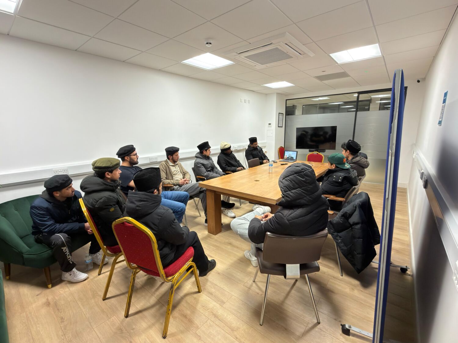 The session included a detailed discussion on Qur’anic and Biblical references relating to war, examining how scripture is often taken out of context and how media narratives can portray Islam and Muslims in a negative light. Khuddam engaged in thoughtful dialogue on how to respond to such narratives in a balanced and informed manner.