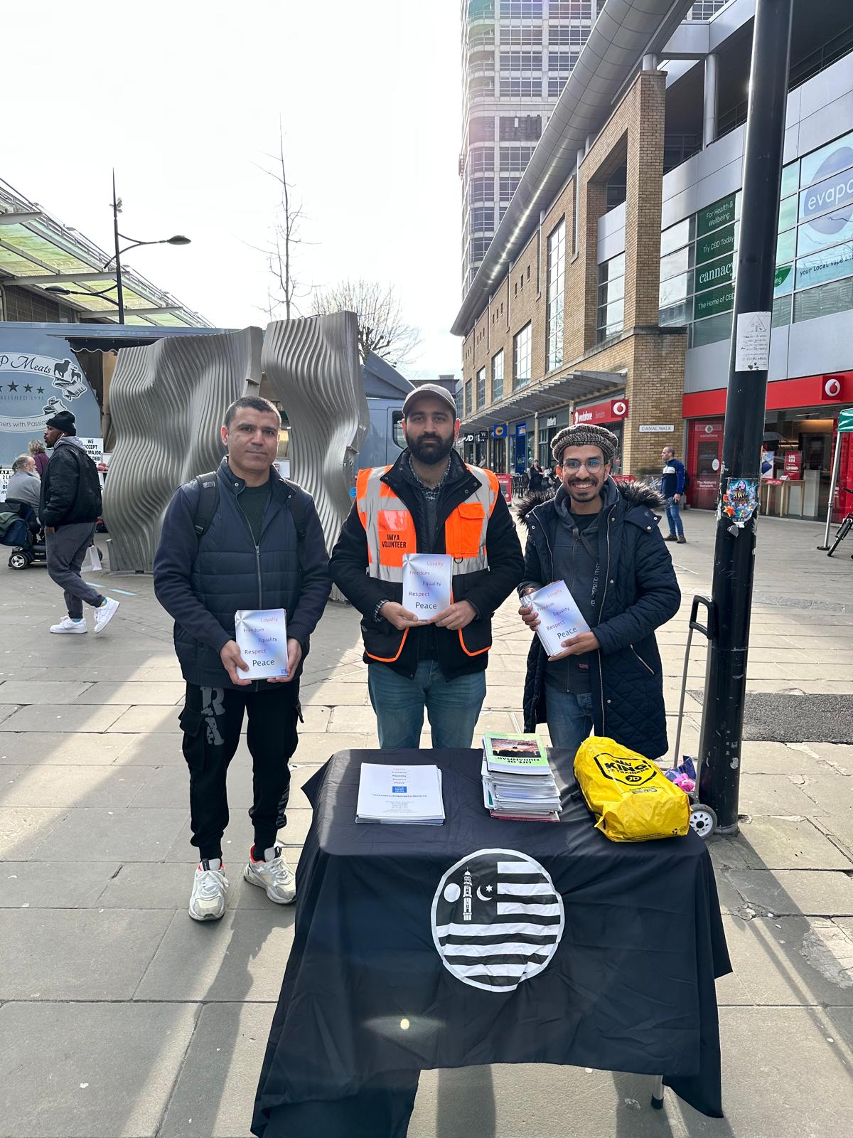 On Friday 7th March a session was organised in Swindon town center where over 200 Truth about Islam Ahmadiyyat & other leaflets were distributed. A total of 3 khuddam participated. Khuddam interacted with the locals who appreciated our efforts about removing misconceptions that Islam holds in some minds.