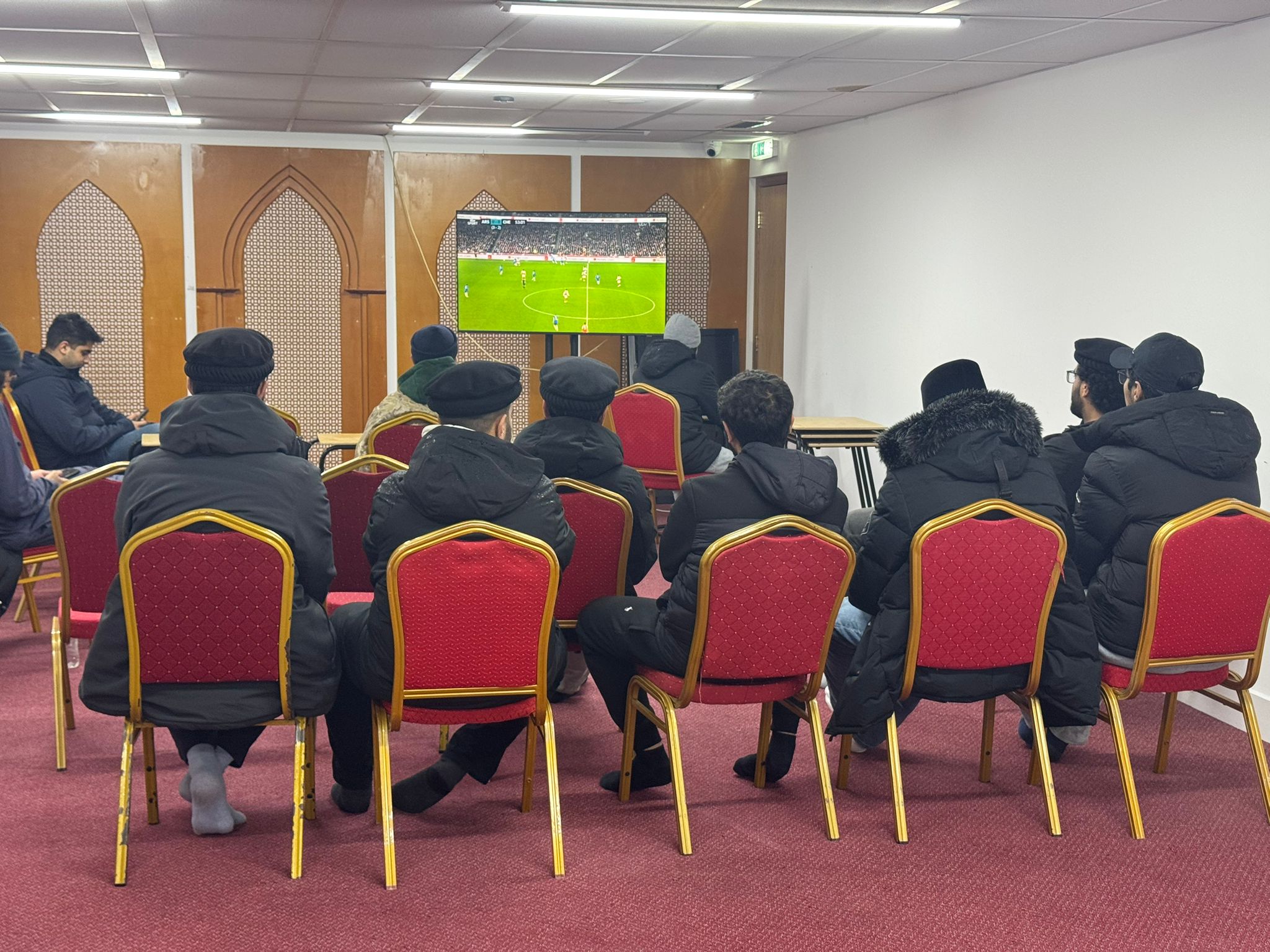 Khuddam gathered at the Fazl Mosque for a watchalong of the much-anticipated match between Arsenal and Chelsea in the EFL Cup. The evening provided an enjoyable opportunity for members to come together, relax, and share the excitement of live football in a friendly environment.