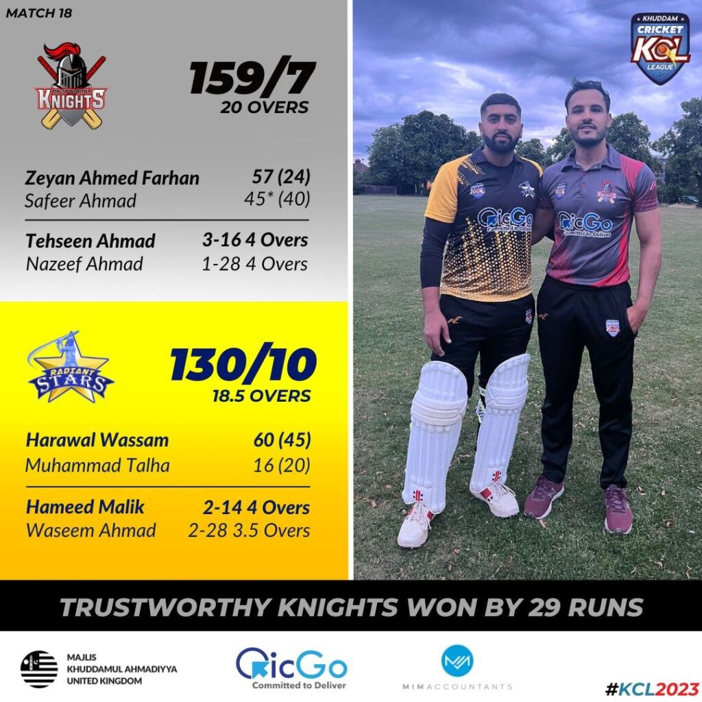 The Knights needed to win and they have done well to level themselves with the Stars, who are now also feeling the heat of the latter phase of the group stages. Zeyan was rightfully awarded the MOTM for his brilliant, match winning innings in a serious pressure situation.