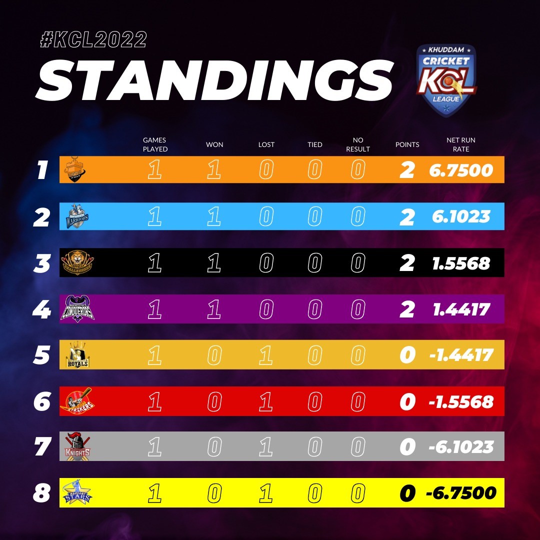 KCL SOUTH LEAGUE STANDINGS – MATCH DAY 1