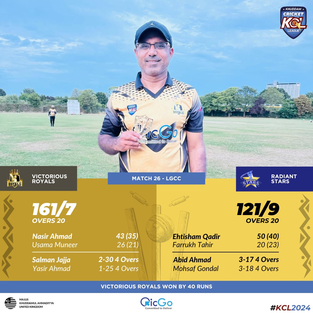 The Royals have done what they needed to do in order to ensure their good work from the early stages of the season does not go to waste and have finished above the Warriors, Conquerors and Challengers at least (who all wait anxiously to see how the results will fare for them going forward). This win will most likely give them two bites at the Cherry with a top 2 play off match. The stars unfortunately did not align for the Stars this season as they most likely have to bow out with 6 points and a very unlikely chance to slip through on NRR. Although, they did have one of their better campaigns in the league competition with some great performances. It was great to see the development of a player like Tehseen own the tournament with some excellent batting performances, whilst Salman Jajja has lead his young side well as was his aim to challenge for the trophy through an injection of young legs with the wisdom of senior pros.