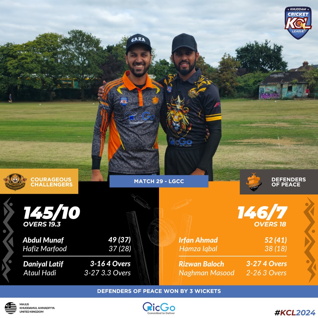 A 70 run partnership between Irfan (52 off 41) and Hamza had the Defenders in cruise control and on their way to a final’s spot, but a brief moment of controversy added a slight twist in the tail as Hamza was adjudged caught out by the narrowest of margins on the boundary. At 106-5, the job was still a lot more doable, but the wicket of Irfan by off the bowling of Ehsan at 108-6 brought the nerves back for the Defenders. The Challengers cannot claim that they didn’t have the chance to put this game to bed as simple run out opportunities and sitter catches were squandered! Eventually, Hafiz Zafarullah and Azmat Sheikh (30* off 17) saw this game through for the Defenders and booked their spot in the final of the KCL 2024!