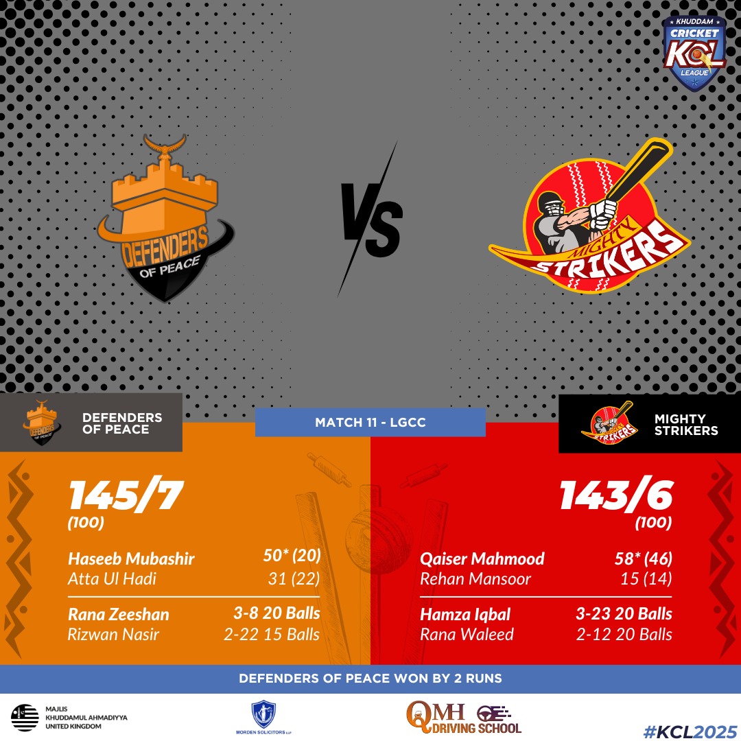 With the momentum now on their side, the Defenders also started all guns blazing with the ball as Hamza Iqbal was all over the Strikers with 3 early scalps of Imran, Usama and Muzamil with the score at 3-29 in 14 balls. A fast and rollicking start meant that the Strikers were slightly ahead of the rate with Qaiser guiding them through the middle, building good partnerships with Rehan and Ali Raza. However, some excellent middle overs by Haseeb, Hadi Waleed who bowled 60 balls between them for 61 runs really stemmed the runs flow. Adil was given the task of defending 19 runs in the last set of 5 balls, and although there were some heart racing moments for the bowling captain, with 17 runs hit by Qaiser (58* off 46), the game was just about won by 2 more runs at the end as the Strikers finished 143-6!