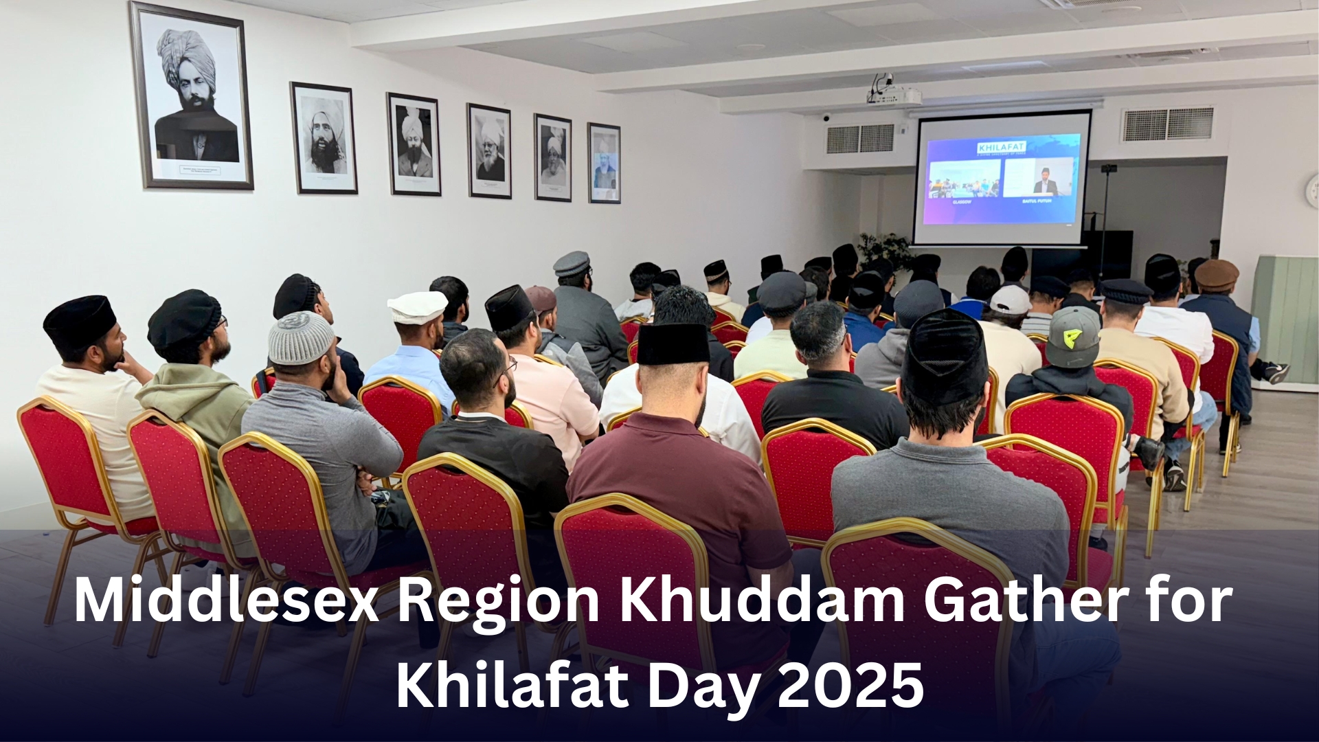 Southall, 1st June 2025 – Khuddam from across Middlesex Region gathered at Darul Salaam Mosque, Southall, to commemorate Khilafat Day, A spiritual and educational event organised by Majlis Khuddamul Ahmadiyya Middlesex, attended by over 50 Khuddam.