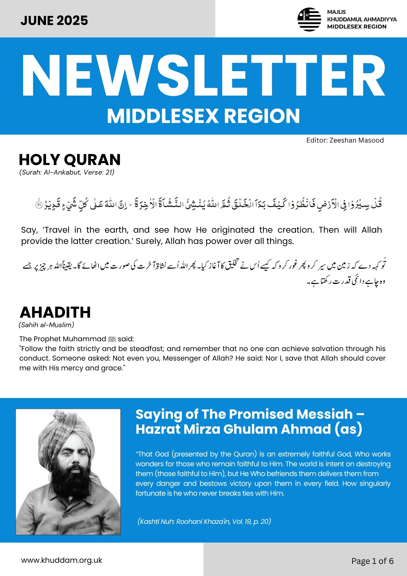 Attached is the Middlesex Region Newsletter for June 2025, featuring stories from various events/activities held across different Qa’idats within and outside the region.