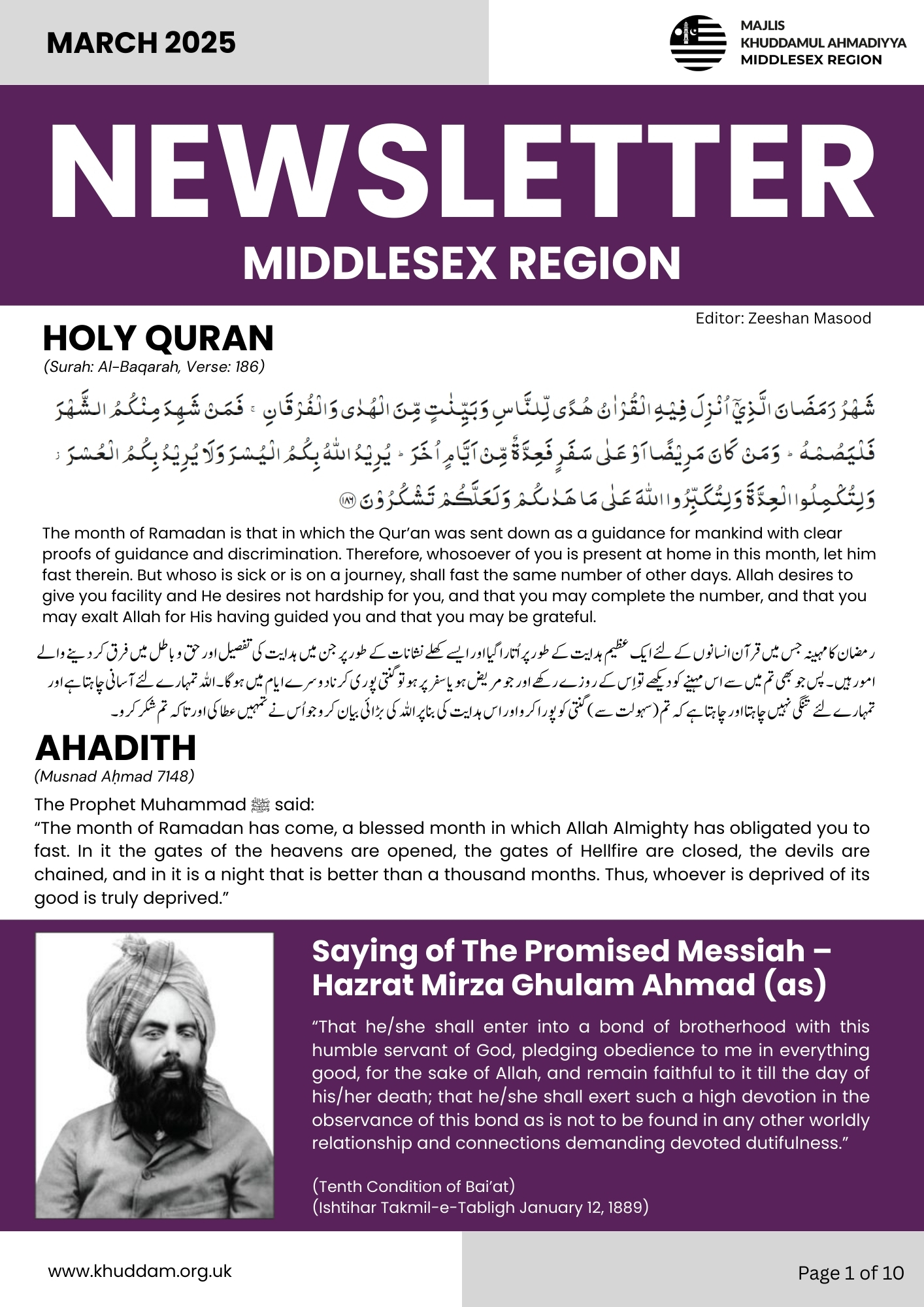 Attached is the Middlesex Region Newsletter for March 2025, featuring 14 top stories from various events/activities held across different Qa’idats within the region.