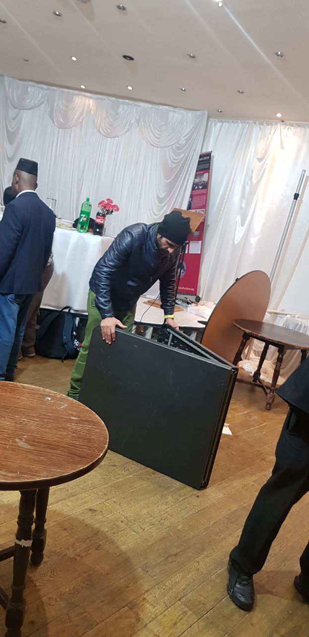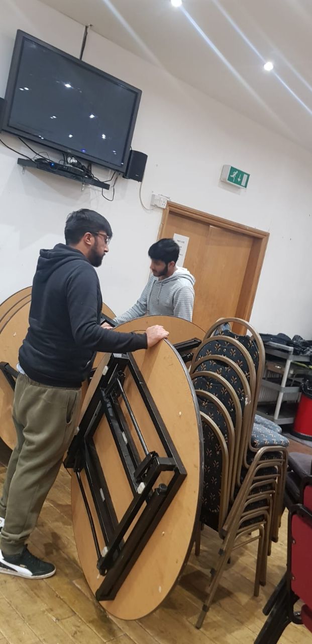 They winded up afterwards which included clearing the tables, folding them, stacking chairs, removing chair covers and cleaning the hall with a brush and picking every piece of litter up — finished at 9.30 PM. So a total of 6 hours and 30 mins which total to 130man hours.